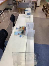 音読するときは、透明アクリル板を通して行っています。