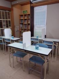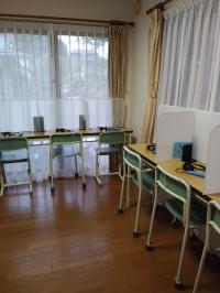 感染予防として密にならないよう、席の間隔をあけて学習してもらいます。