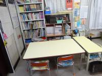 教材棚と英語のリスニングコーナーです。