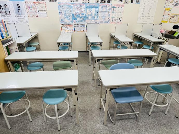 飛沫防止のため、指導者・スタッフ・生徒間、一部パーテーションを設置しています。