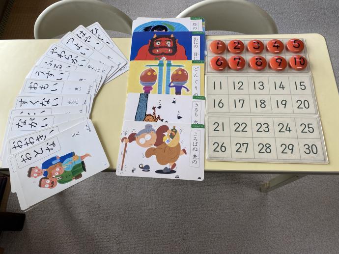すうじ盤やカードなども使って、楽しみながら、言える数字や言葉を増やします。