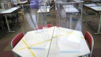 コの字型透明パーテーションを設置しています。