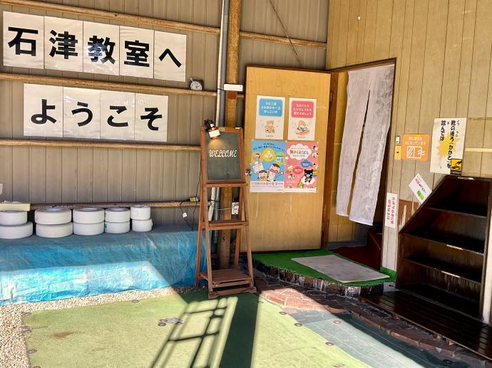 集中力を発揮して自学自習できる教室は2階です。靴を脱いでお上がりください。