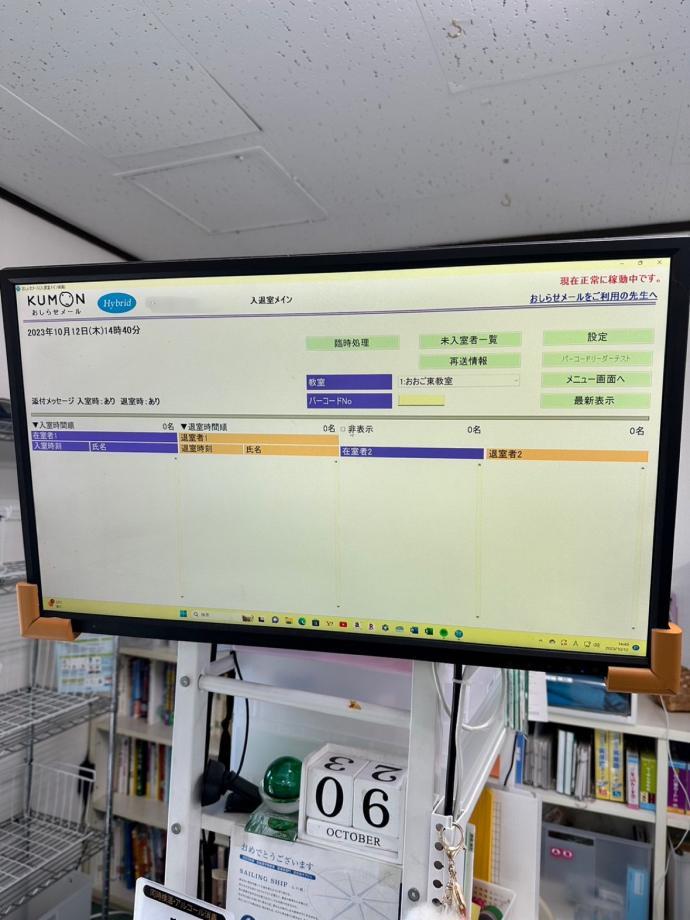 生徒の入退室時に保護者の方にメールが届く「おしらせメール」を導入しています。