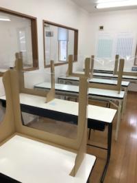 感染防止対策としてスクールシールドを一人ずつに机に設置いたしました。