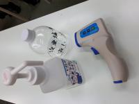 入室時の検温、手指消毒、机などの消毒を実施しています