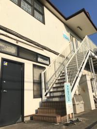 教室は2階です。こちらの階段からお上がりください。