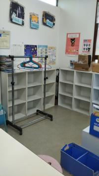 ランドセルや大きな荷物を入れるロッカーとハンガーです。