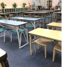 身長の違いに配慮し4種類の高さの違う机と椅子があります。