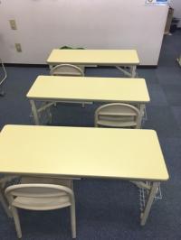 現在、感染防止のため、2人掛け用の机に1人で座って頂いております。