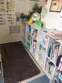 幼児の座れるサイズの机と椅子もあります。現在、二人掛けの机に一人ずつで