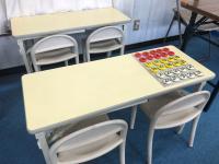 幼児さんの学習席。低い机とイスで落ち着いて学習しています。