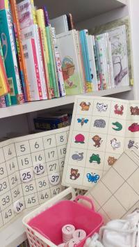 自ら本を読んだり数字盤・漢字盤をしてお迎えを待ちます。