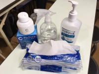 感染対策として手の消毒を徹底しています。また、教室前後で机の消毒を行っています。