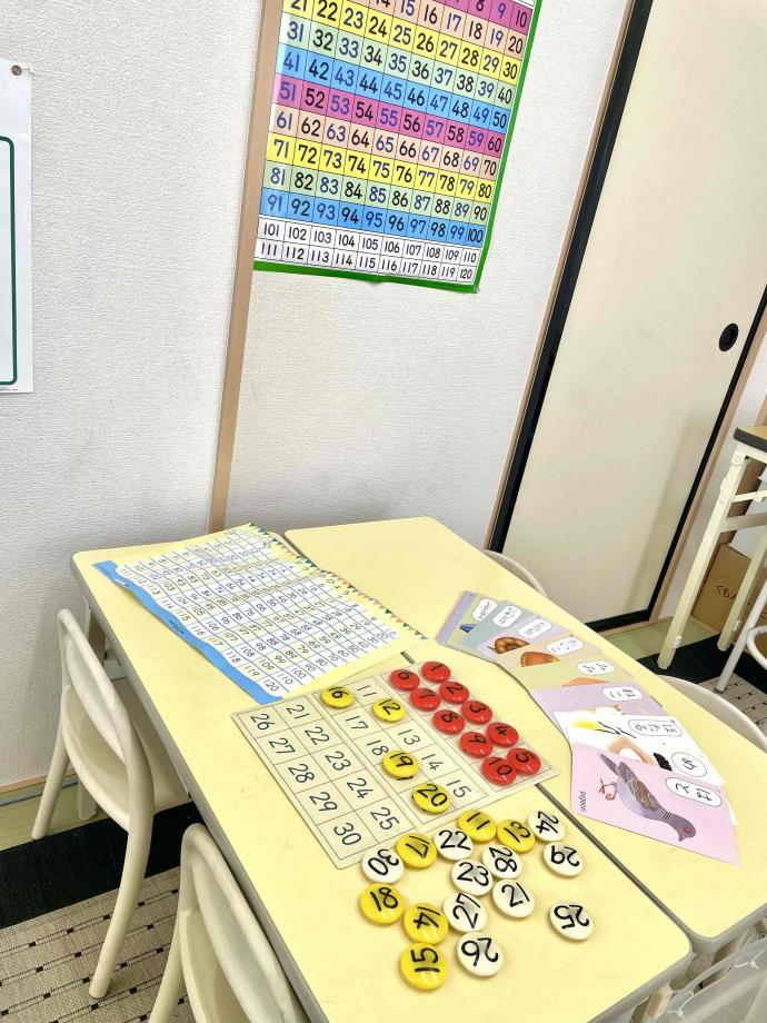 幼児さんは数字盤、ひらがなカード、数字の表も使います。