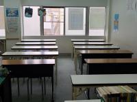 換気扇で空気を回し空気清浄機の効力を教室全体にいきわたるようにしています。