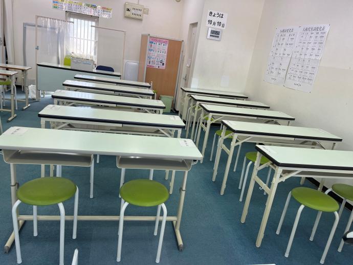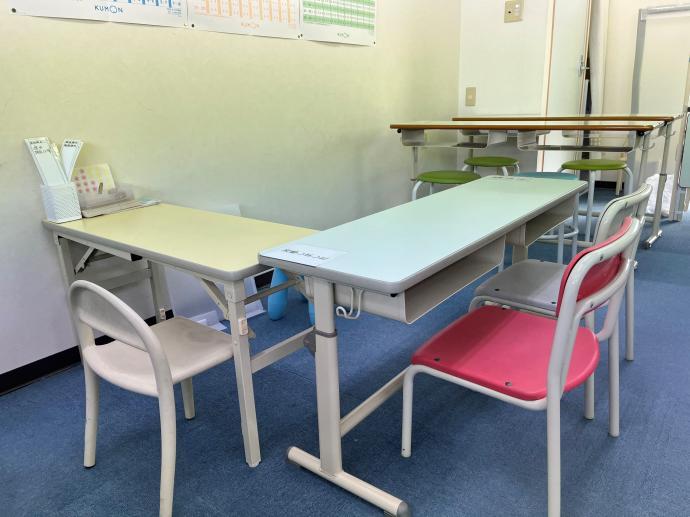 高さの調節できる机を完備。幼児さんでも楽しく学習できます。