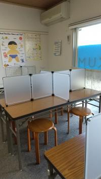 学習スペースでは、衝立を設置し感染症対策に講じております。