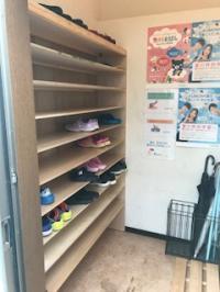 玄関です。靴を脱いで2Fにお上がりください。