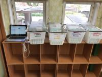 入室後、個人別フォルダーを手に取って、バーコードで入室確認します。