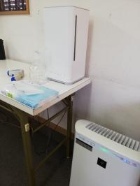 感染防止対策として、検温・消毒・空気清浄機の設置をしています。