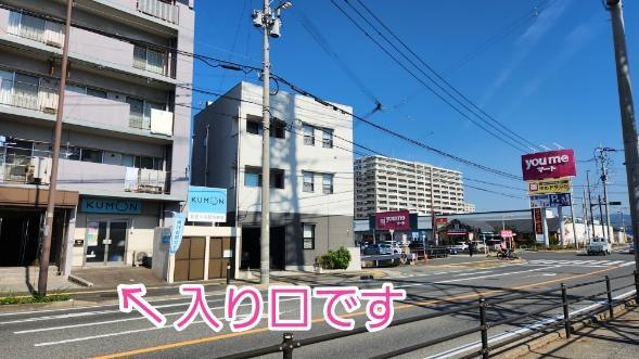 ゆめマート新宮店さんから信号を渡ってすぐ、薄紫色のマンション1階です
