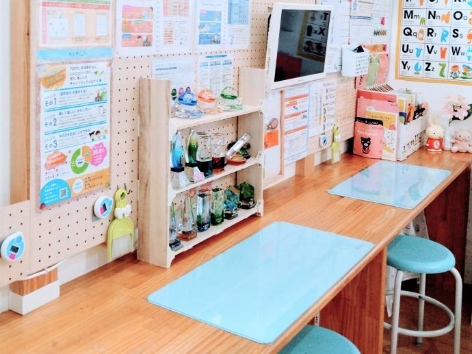 幼児用の席が有ります。背もたれ付きの椅子で安全に学習できます。
