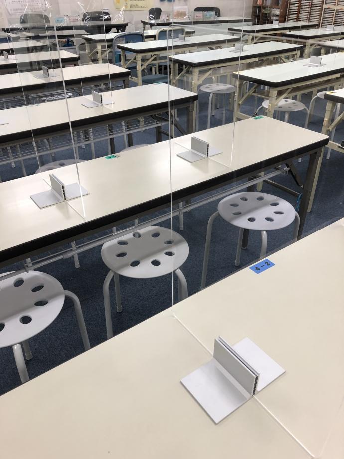 1席ずつパーテーションを設置し感染予防をしています