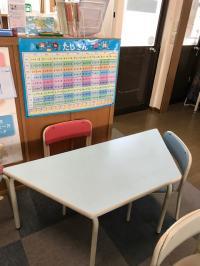 幼児の体に合った高さの机と椅子でスタッフや指導者と学習します。