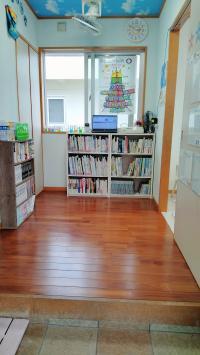 待合コーナー。読書やパズル等をしてお迎えを待ちます。