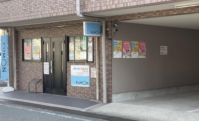 教室の外観です。.荻野バス停の向かいです。右側に駐輪場があります。