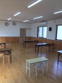 下庄公民館内の教室で、綺麗な建物です。室内も広く、のびのびと学習できます。保護者の方の駐車場は、教室前に2台、教室横に縦列駐車で停めていただけます。