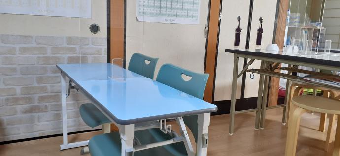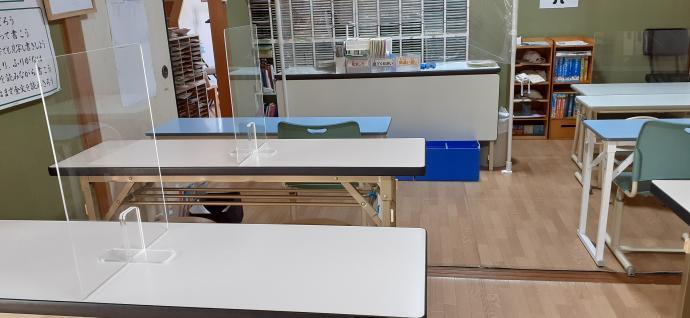 感染対策として、生徒さんと生徒さんの間にアクリル板を設置しております。