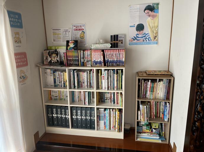 待合室には、いろんなジャンルの本が♪貸し出しもしています。
