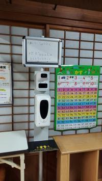 感染対策①入室前の検温・消毒、窓の常時開放、アクリル板の設置