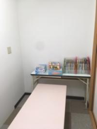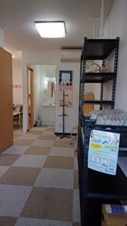 教室入ってすぐの玄関です。右側の本棚から本を読んで待つ子もいます。