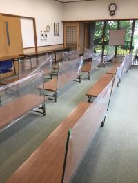 机にパーテーションを設置し、飛沫防止を徹底しております。
