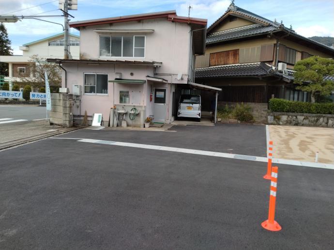 建物に向かって右側に入り口があり、前には駐車場があります。お気軽にどうぞ。