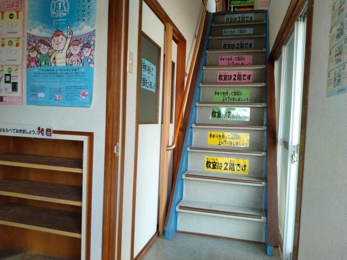 教室は2階です。靴を脱いで階段をお上がりください。