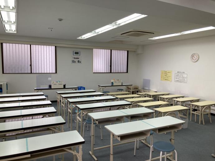 明るい教室で、机1台につき、お一人ずつ座って学習していただいております。