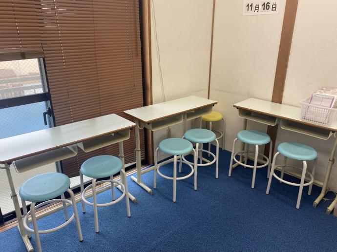 各自集中できるように壁に机をつけて学習します。