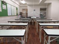 新型肺炎の流行にともなって、入退室時の手指の消毒やマスクの着用、パーテーションの設置等、感染対策に取り組んでいます。生徒の学習時には間隔をあけて着席できるように机椅子を配置しております。