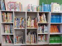 本棚には、公文式の国語教材に採用されている本をたくさん揃えております。