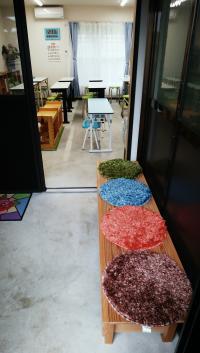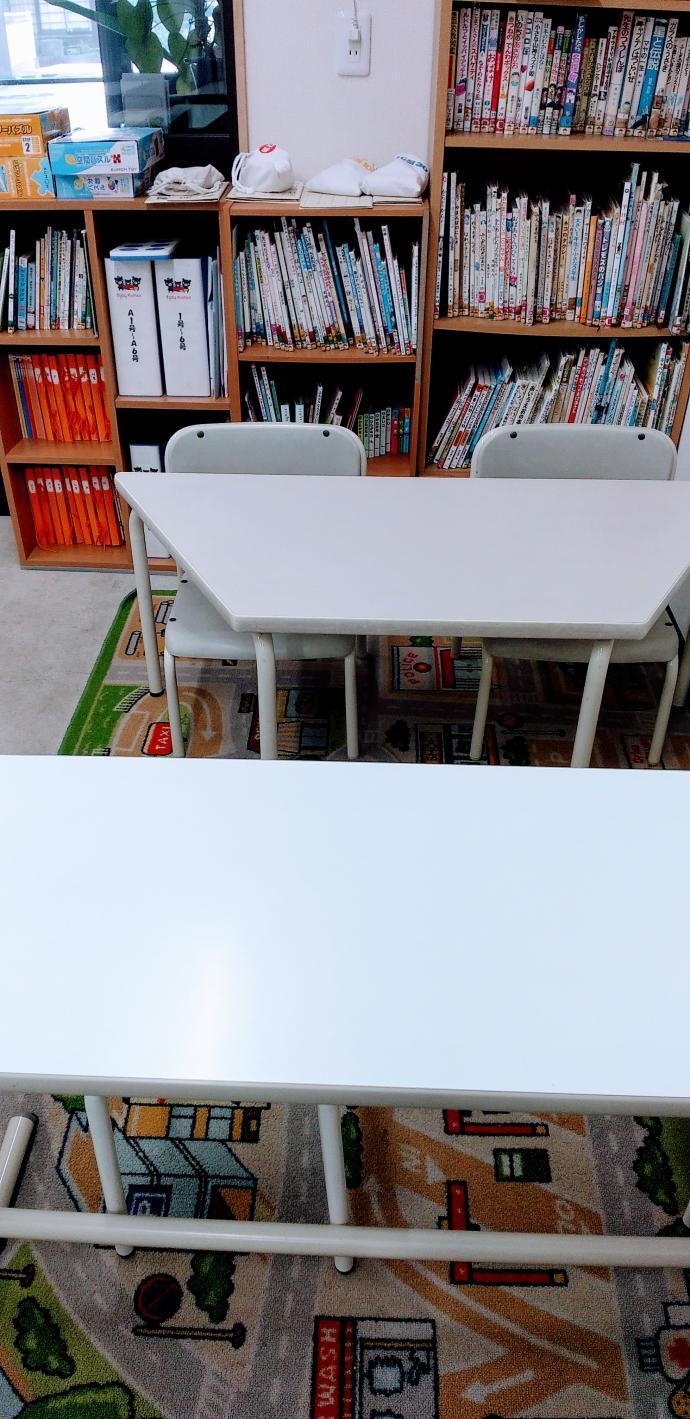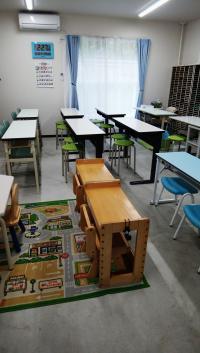 幼児さんはこの席で先生と一緒に学習します。本やパズルも用意していますから