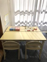 幼児さんの学習机、1対1でじっくりと。半自立学習が可能になり次第、一般席へ。