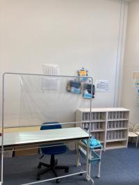 感染防止のため、各所にパーテーションを設置し、消毒・換気も行っております。