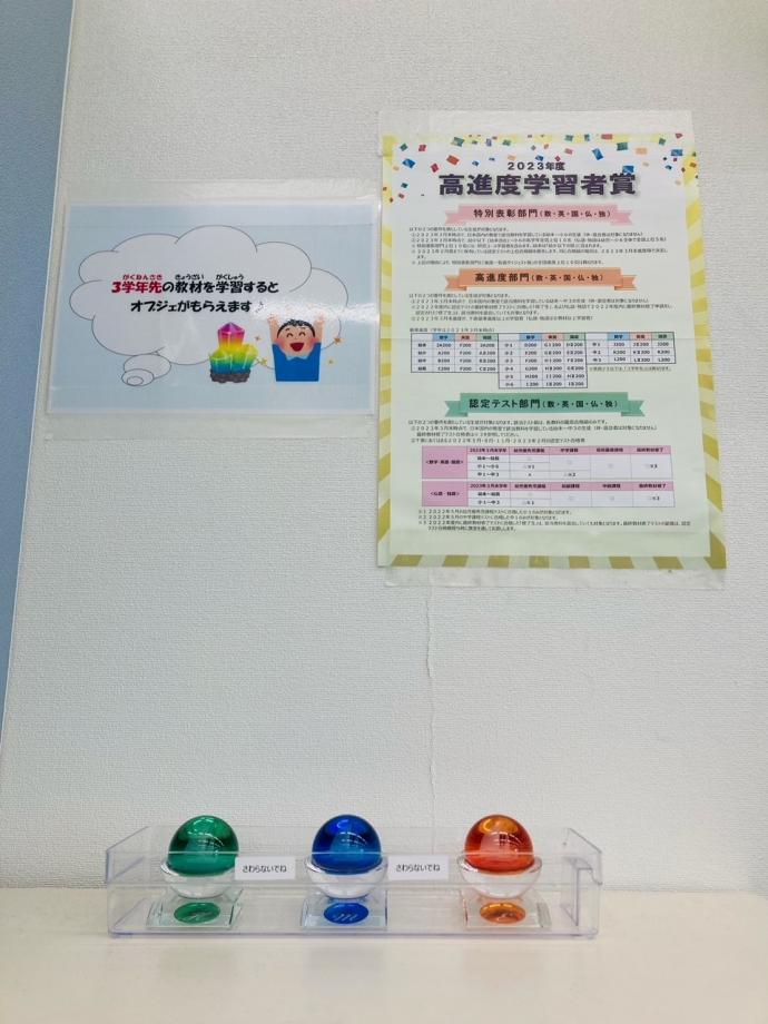 3学年以上先を学習すると貰える、オブジェを目指して頑張っている生徒さんもいます♪