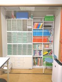 くもんすいせん図書、教材が手の届きやすい所にあります。