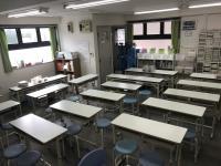 明るくきれいな教室で集中できるように机を配置しています。
