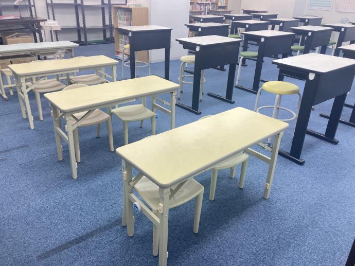 幼児さん用の背の低い机とせもたれつきの椅子もご用意しています。